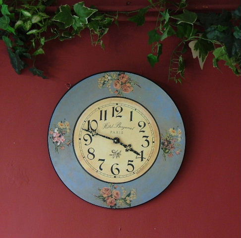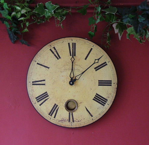 de Provence clock with antiques brass rim and glass covering the dial. |